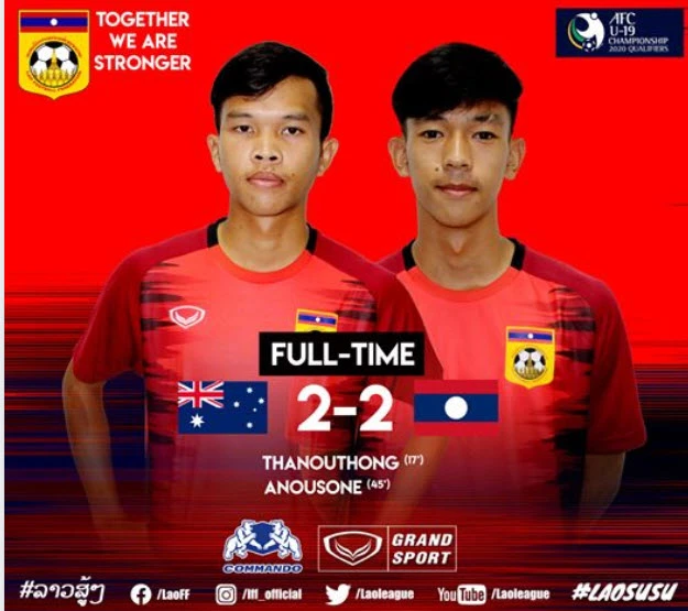 Kết quả bất ngờ nhất vòng loại U-19 châu Á chính là việc Lào cầm hòa được gã khổng lồ Úc với tỉ số 2-2 tại bảng H. Thậm chí, U-19 Lào còn gây sốc khi dẫn trước Úc đến 2-0 sau hiệp 1 bằng hai bàn thắng của Thanouthong Ketnalonglop và Anousone Xaypanya. Sang hiệp 2, đội bóng “xứ chuột túi” vất vả lắm mới gỡ hòa 2-2 giành lại 1 điểm bằng hai bàn của Dylan Ruiz-Diaz và Jorrod Carluccio.