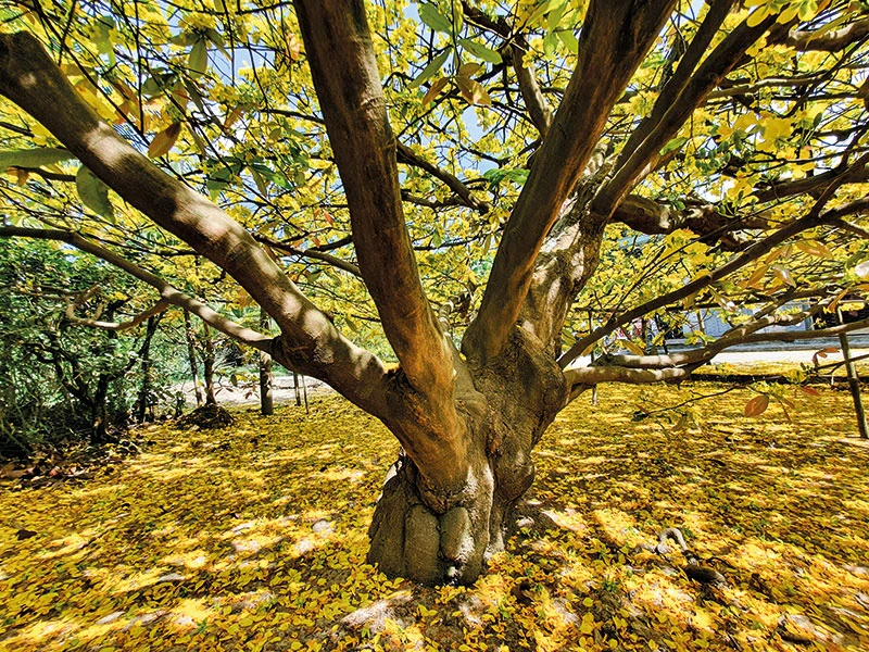 Cây mai u lão, sần sùi, đặc biệt gần gốc nó có những cái u như móng rồng rất lạ. Cây mai nhà ông Ba tới mùa nở sáng bừng cả xóm, hoa to như cái khu chén, nhiều cánh, vàng bung, lá cành vâm váp và rất đều tán. Mùa khác, cả đám con nít đứa trải chiếu ngồi, đứa bắn bi dưới gốc mai mát rượi.