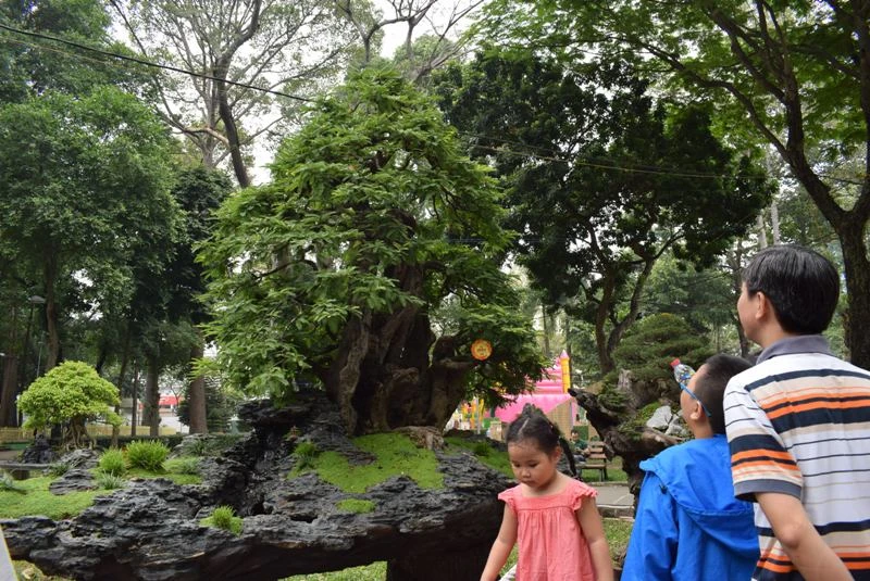Lão me cả chậu cao gần 3 m, ngang 4 m. Tiểu cảnh này do nghệ nhân Trần Hiếu Dân (thành viên của Hội Sinh vật cảnh TP.HCM) thực hiện, còn có tên gọi: “Trường tồn”.