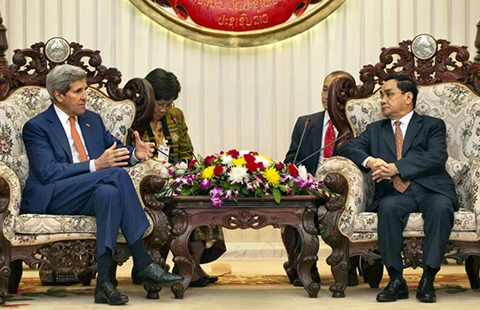 Ngoại trưởng John Kerry đến thủ đô Lào hôm 24-1 trong khuôn khổ chuyến thăm cấp cao hiếm hoi của ngoại trưởng Mỹ đến quốc gia Đông Nam Á này.