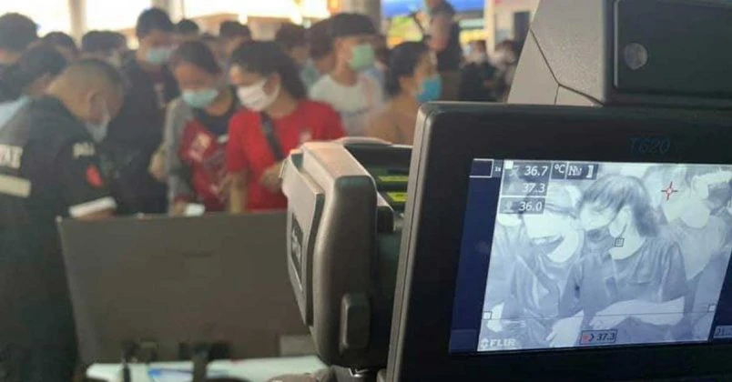 Nhân viên y tế tại một chốt biên phòng kiểm tra người lao động Lào trở về nước từ Thái Lan. Ảnh: LAO YOUTH RADIO