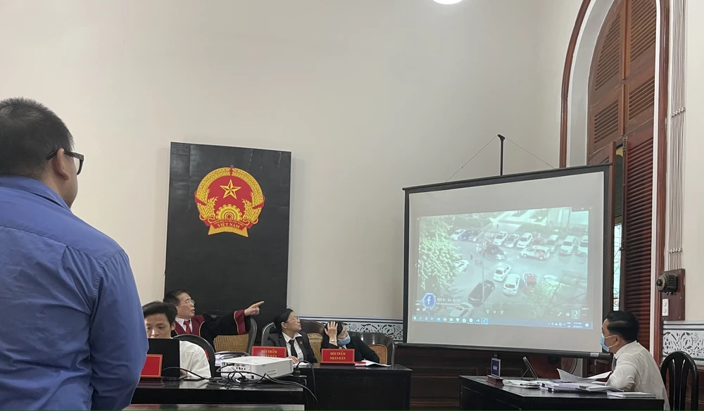 HĐXX trình chiếu đoạn clip ghi lại toàn bộ diễn biến sự việc. Ảnh: H.YẾN