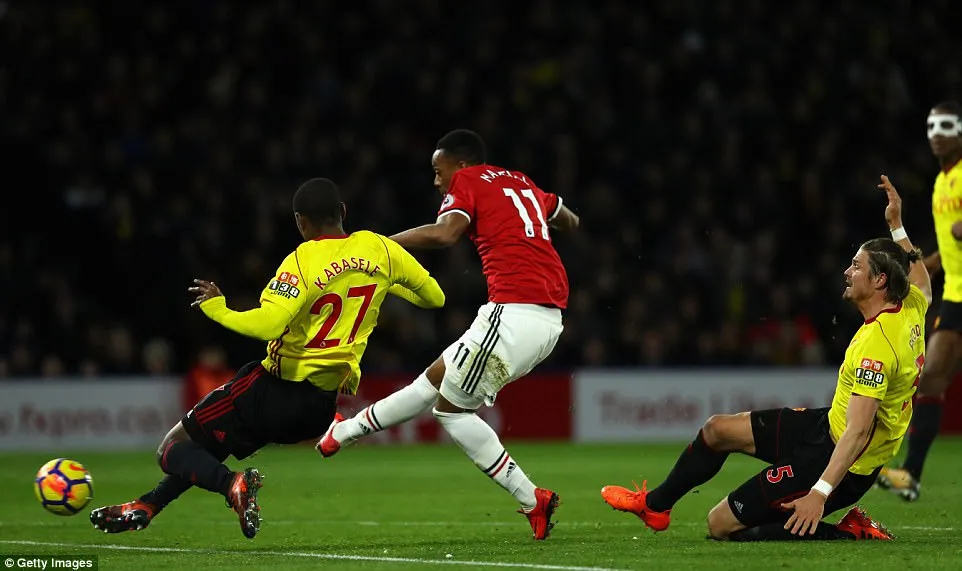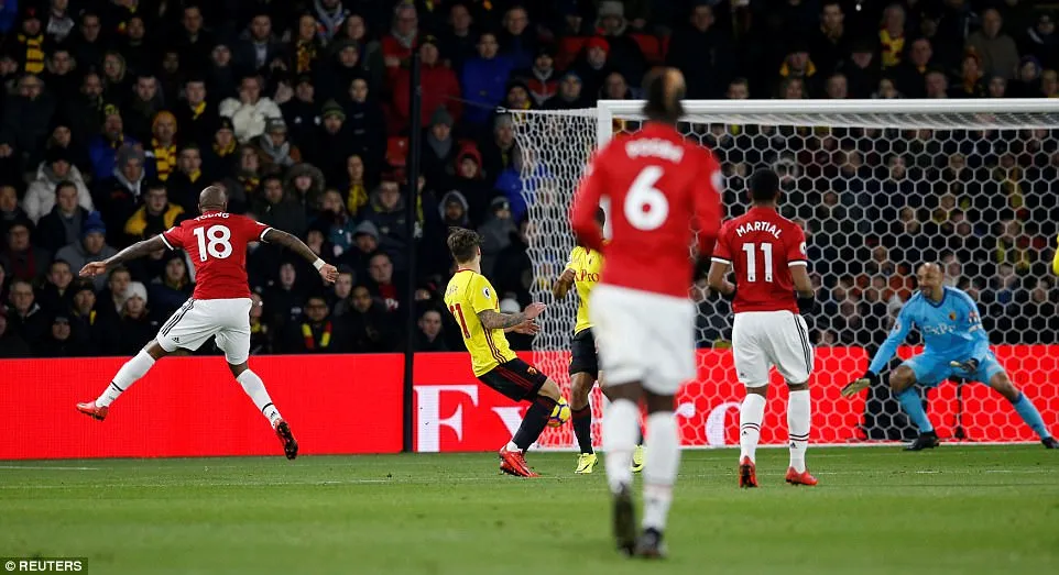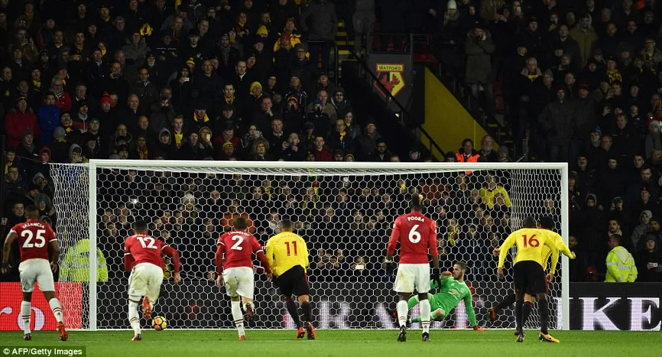 Bỏ lỡ nhiều cơ hội, MU phải trả giá và sống trong cảnh thấp thỏm lo sợ trong những phút cuối vì bị đối thủ gỡ hai bàn liền. Phút 77, Rojo cản phá trái phép cầu thủ Watford trong vòng cấm khiến MU phải chịu phạt đền. Trên chấm 11m, Deeney sút thắng De Gea gỡ lại 1-3 cho Watford.