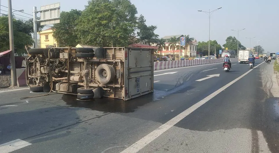 Tại hiện trường, chiếc xe tải bị lật ngang đường, đầu xe bị hư hỏng, biến dạng, tài xế cũng bị thương nhẹ. Vụ tai nạn khiến giao thông ùn tắc khoảng 30 phút.