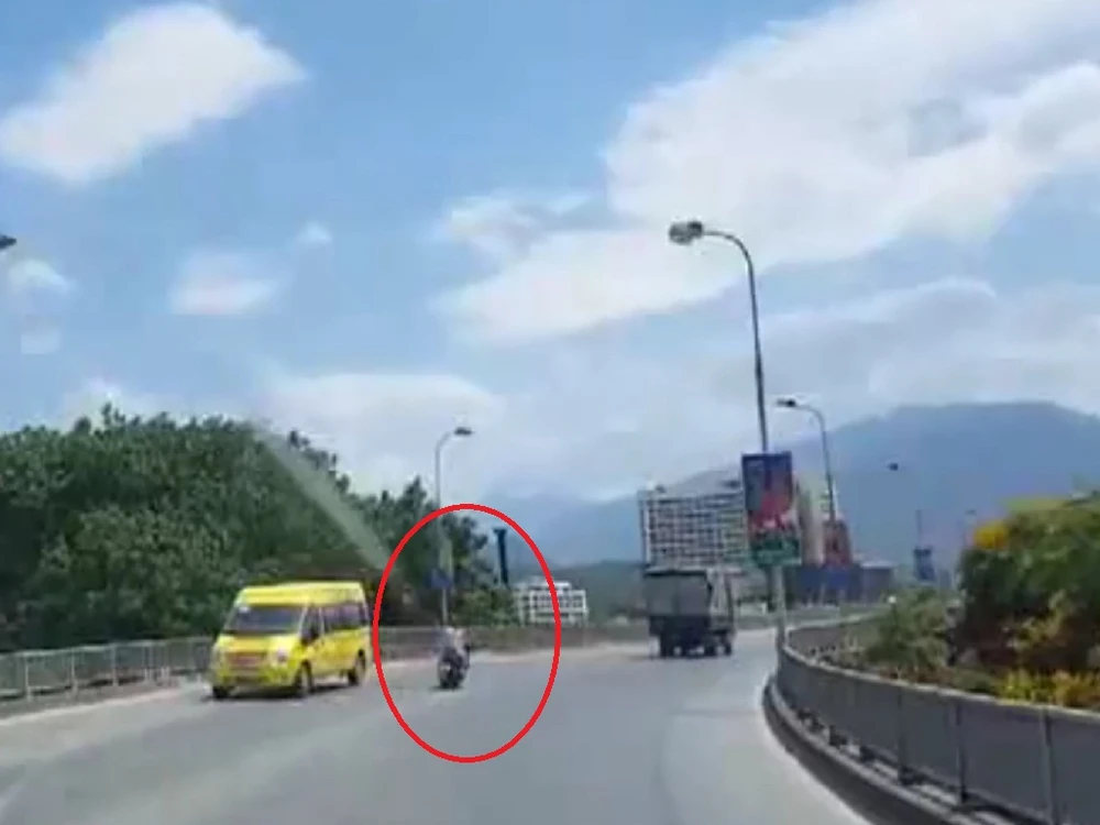 Hình ảnh từ đoạn clip cho thấy một nam thanh niên điều khiển xe máy hiệu Air Blade, chở theo cô gái phía sau chạy với tốc độ rất cao trên cầu. Chiếc xe máy lần lượt vượt qua nhiều ô tô đang lưu thông cùng chiều.