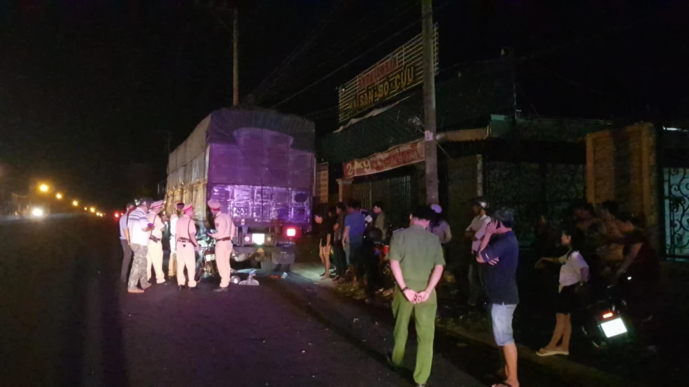 Cơ quan công an khám nghiệm hiện trường vụ tai nạn. Ảnh: KD