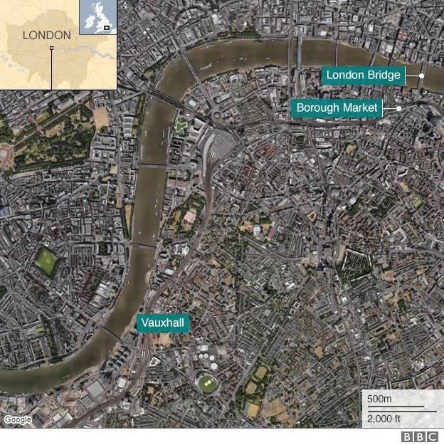 Cảnh sát London trong khi đó xác nhận, vụ tấn công ở cầu London và chợ Borough là tấn công khủng bố, còn vụ việc ở Vauxhall không liên quan đến hAI vụ việc trên. Đây là vụ tấn công thứ ba ở Anh trong vòng chưa đầy ba tháng. Một sự việc tương tự xảy ra hồi tháng 3. Thủ phạm Khalid Masood đã lao một chiếc xe thuê vào những người đi bộ trên cầu Westminster, sau đó dùng dao đâm chết một cảnh sát. Vụ tấn công khiến sáu người thiệt mạng, bao gồm cả thủ phạm. Tháng trước, một kẻ đánh bom tự sát tấn công buổi hòa nhạc tại nhà thi đấu Manchester, làm 22 người chết.