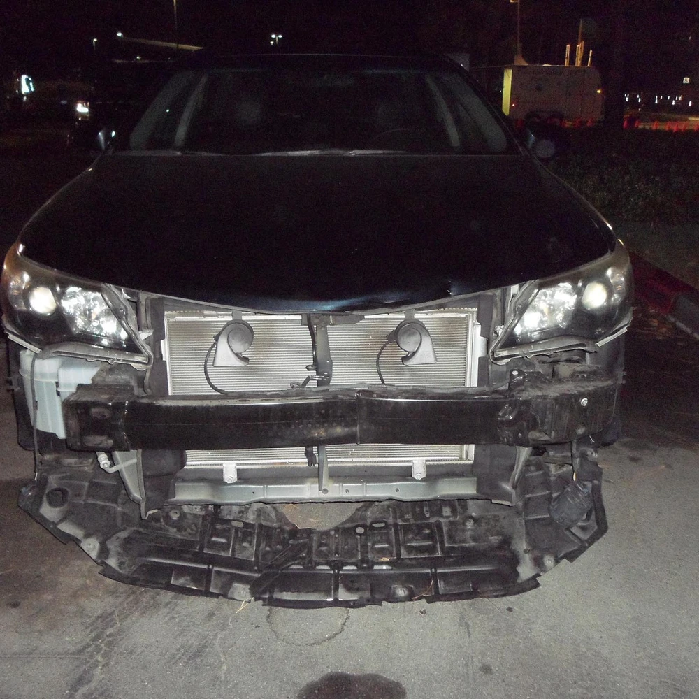 Xe của Evan Nguyen bị hư hỏng nặng ở phần đầu. Ảnh: NEW SANTA ANA/FACEBOOK