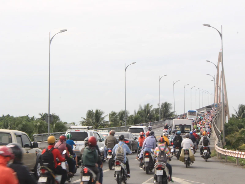 Cầu Rạch Miễu hiện hữu thường xuyên quá tải vào dịp lễ, tết hoặc cuối tuần. Ảnh: ĐH