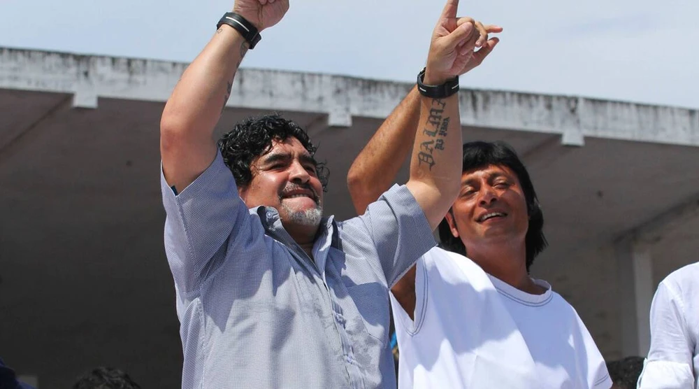 Đôi bạn thân Maradona và Chemmanur dự khán một trận bóng đá ở Kerala. Ảnh: India Express.
