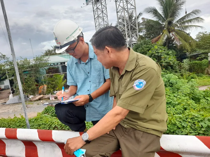Công ty BOT Cầu Rạch Miễu đã lập biên bản vi phạm đối với công ty Trung Nam 18 E&C vi phạm hành lang cầu. Ảnh: Đông Hà