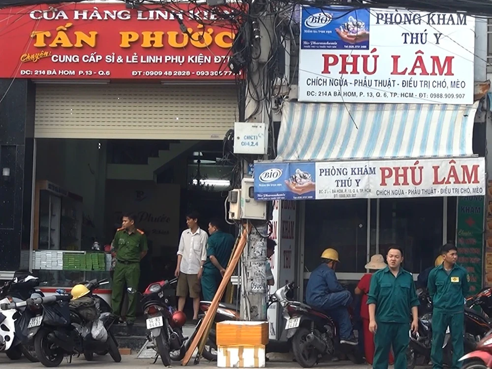 Thông tin ban đầu, vào chiều 31-12, nhóm công nhân đang lắp đặt biển quảng cáo cho một cửa hàng đồng thời là căn nhà 5 tầng ở địa chỉ 214 Bà Hom, phường 13 (quận 6, TP.HCM).