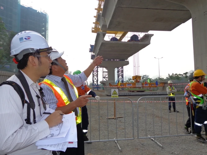 Theo ông Bùi Xuân Cường, Giám đốc Ban quản lý đường sắt đô thị, lần đầu tiên tại Việt Nam áp dụng công nghệ lắp ghép dầm đúc sẵn bằng hệ đà giáo di động trên cao.