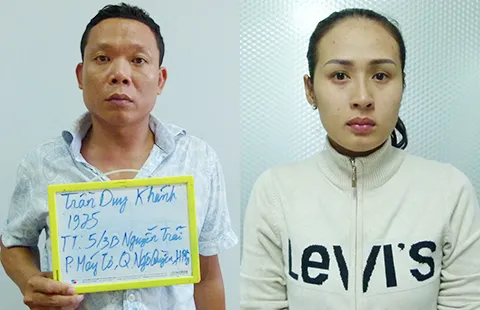 Trần Duy Khánh cùng vợ là Mai Thị Diễm Châu khi bị bắt. Ảnh: Công an cung cấp
