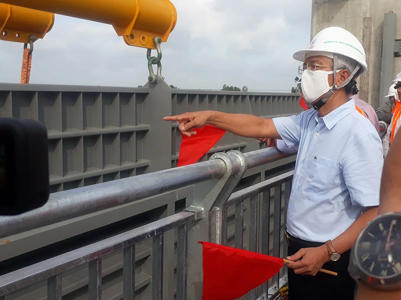 "Đây là sự kiện rất quan trọng, có ý nghĩa lớn chào mừng đại hội Đảng bộ TP. Thời gian tới, chúng ta còn phải triển khai nhiều công tác của dự án này" - ông Võ Văn Hoan phát biểu trong lễ phát lệnh lắp cửa van sáng 22-8.