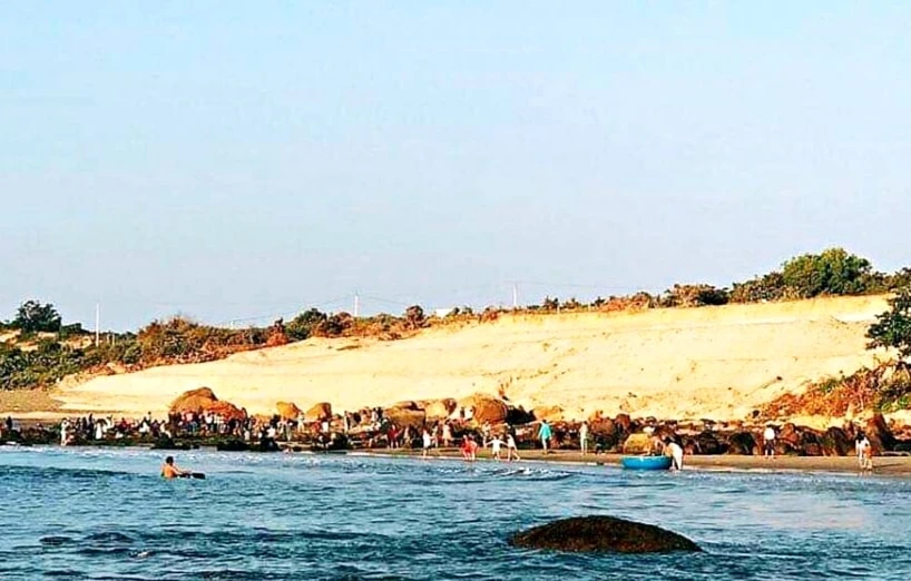 Núi cát cao hơn 10m với độ dốc cao có thể sập xuống bãi đá bất cứ lúc nào