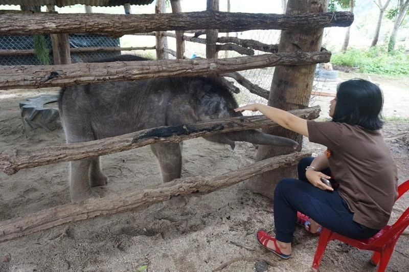 Voi Jun (5 tuổi được) bị bẫy cắt đứt vòi, bàn chân đang được chăm sóc tại trung tâm.