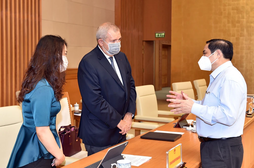 Thủ tướng Phạm Minh Chính trao đổi với Chủ tịch Hiệp hội Doanh nghiệp