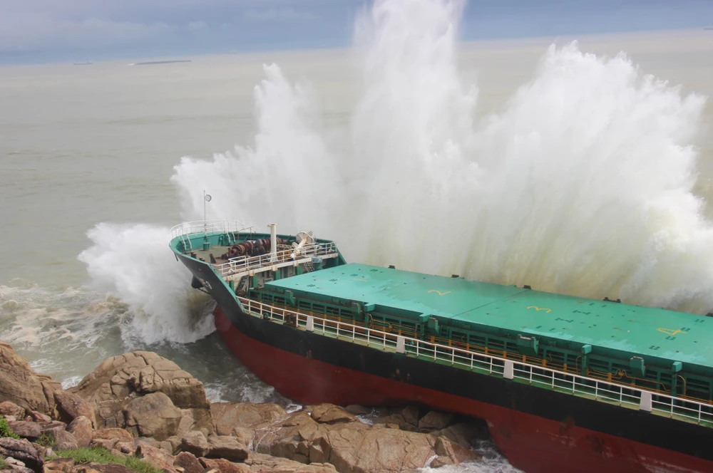 Một tàu hàng bị mắc cạn gần cảng Quy Nhơn