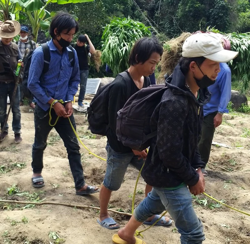 Những người trồng cần sa trái phép bị công an tạm giữ. Ảnh: CA