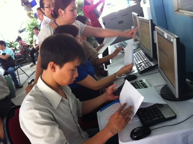 Kê khai các biểu mẫu tại Cục Thuế TP.HCM. Nếu có kho thông tin chung, người dân sẽ không cần kê khai, nộp lại các thông tin đã từng nộp. Ảnh: Quỳnh Như