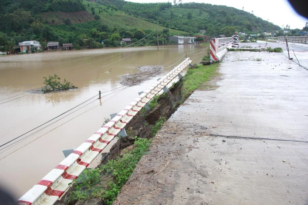 Cầu chữ V tại huyện Krông Bông bị nước lũ cuốn gãy, sập khiến hàng ngàn hộ dân bị cô lập.