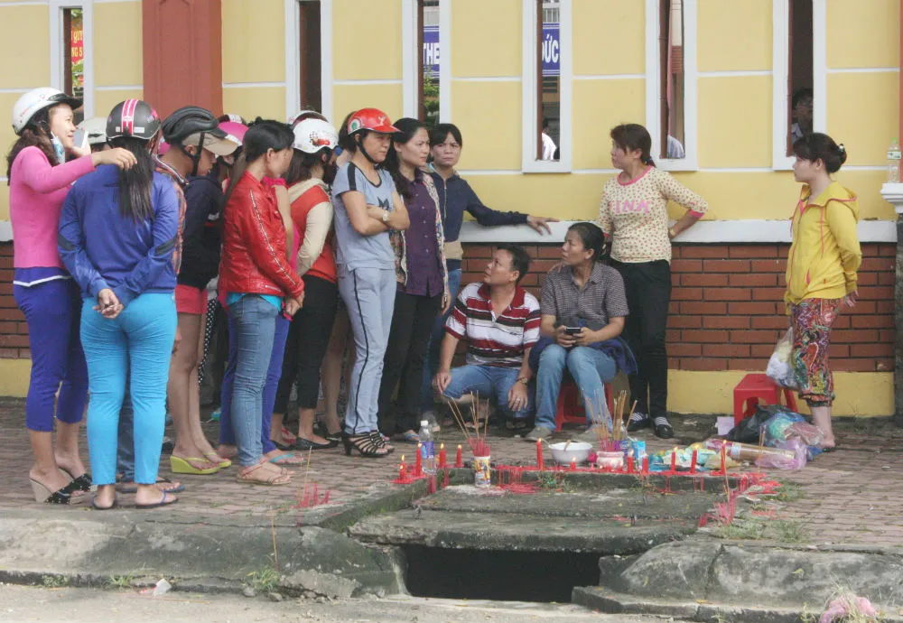 Người dân đang cầu nguyện bên miệng cống nơi bé trai gặp nạn.
