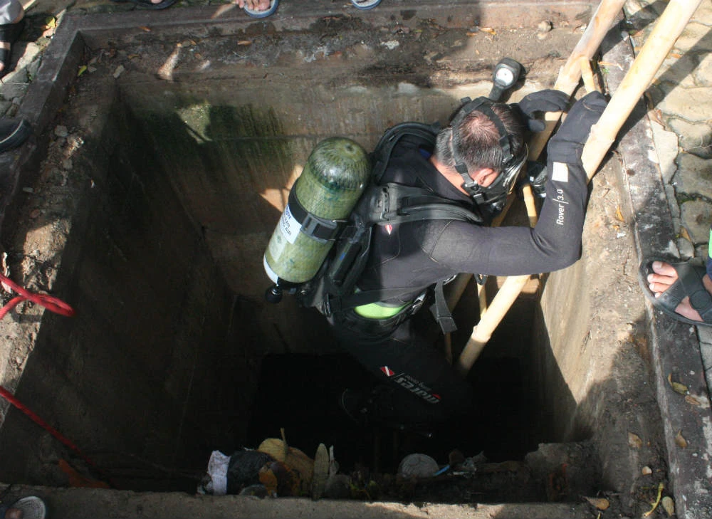 Thợ lặn chuyên nghiệp PCCC tỉnh Bình Dương sẽ mò theo đường cống thoát nước.