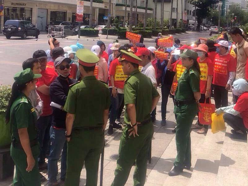 Khách hàng mua đất tại dự án của Angel Lina kéo đến trụ sở UBND TP.HCM để nhờ bảo vệ quyền lợi. Ảnh: NVCC