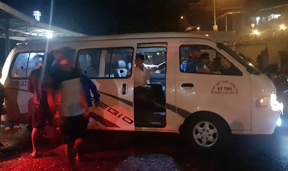 Xe cấp cứu đưa các nạn nhân đi cấp cứu, kiểm tra sức khỏe. Ảnh: LX