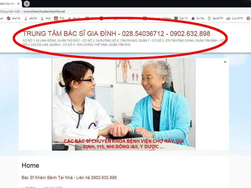 Click vào website khamchuabenhtainha.net được đăng trong chuyên mục quảng cáo của một tờ báo điện tử ở TP.HCM, PV báo Pháp Luật TP.HCM bị chú ý bởi dòng chữ “Trung tâm bác sĩ (BS) gia đình” khá lớn. Phía dưới có ghi địa chỉ năm cơ sở của trung tâm này.