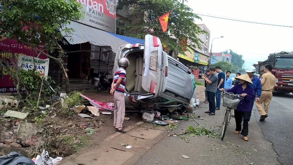 Vào thời điểm trên, nhiều người dân trong khu vực bất ngờ nghe thấy một tiếng va chạm lớn và sau đó là những tiếng kêu cứu thất thanh. Mọi người đổ ra đường thì nhìn thấy một chiếc ô tô bảy chỗ hiệu Fortuner mang biển số 20L- 6599 bị lật ngay trước cửamột ngôi nhà.