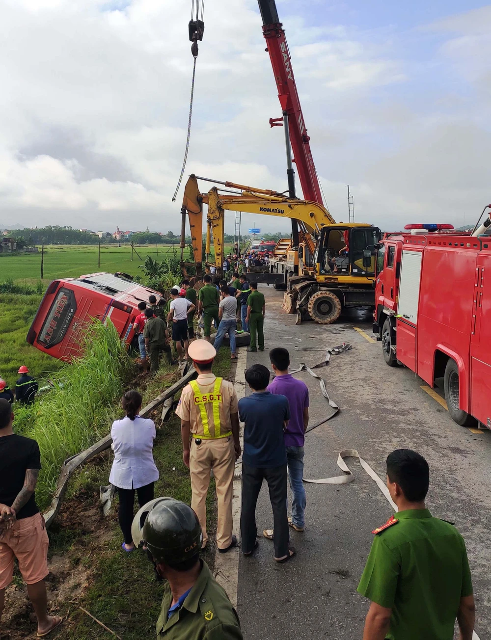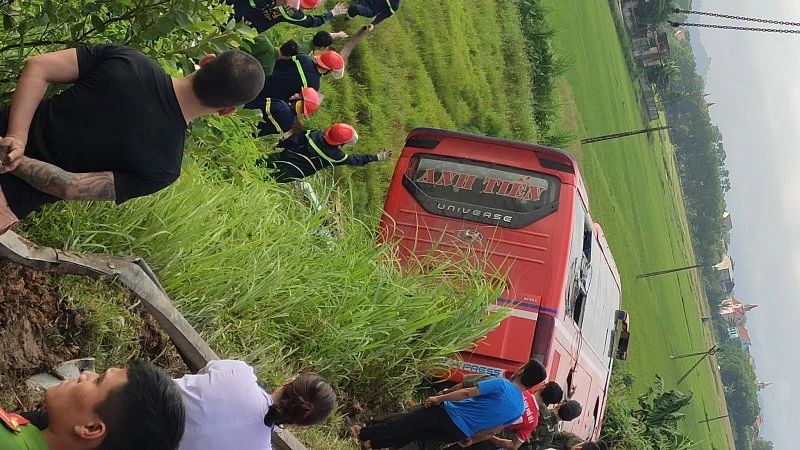 Rạng sáng 9-10, trên đường Hồ Chí Minh đoạn qua xã Sơn Trung, huyện Hương Sơn (Hà Tĩnh), xe khách giường nằm 37B-020.02 chạy hướng Nghệ An- Hà Tĩnh bị mất lái, lật xuống ruộng lúa bên đường.