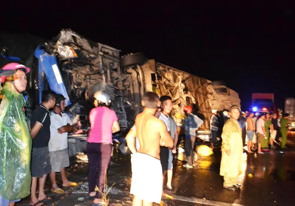 Theo một số nhân chứng, khoảng 19g ngày 25-4, khi đang lưu thông qua đoạn đường trên, xe khách giường nằm 77B-01.500 bất ngờ chao đảo, đâm vào dải phân cách giữa đường, xoay ngược lại tông vào một chiếc xe tải đang chạy chiều ngược lại rồi lật nghiêng. Hành khách trên xe hoảng loạn, kêu cứu trong đêm. Nhiều người dân địa phương đập kính xe, giải cứu các nạn nhân bị mắc kẹt, đưa đi cấp cứu.