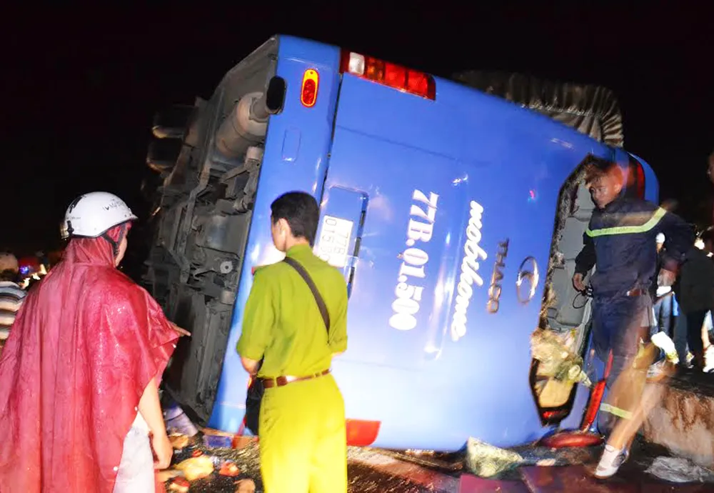 Được biết, xe khách trên xuất phát từ bến xe Tam Quan, huyện Hoài Nhơn (Bình Định) vào chiều cùng ngày để đi TP.HCM. Thời điểm xảy ra tai nạn, khu vực trên có mưa nhỏ.