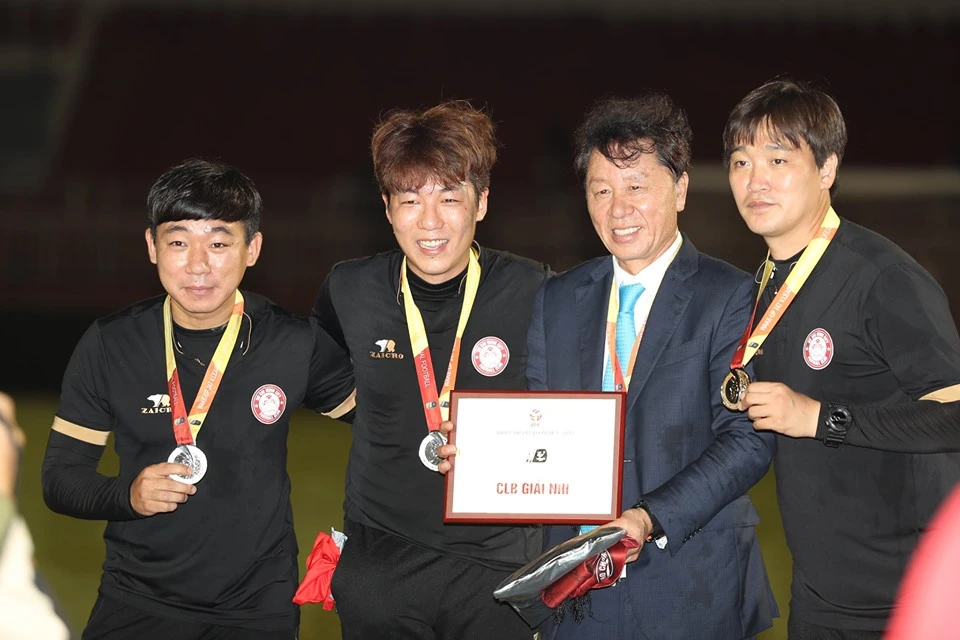 Dàn trợ lý người Hàn Quốc cùng HLV Chung Hae-seong.