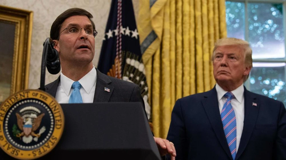 Bộ trưởng Quốc phòng Mỹ Mark Esper (trái) và Tổng thống Donald Trump. Ảnh: REUTERS