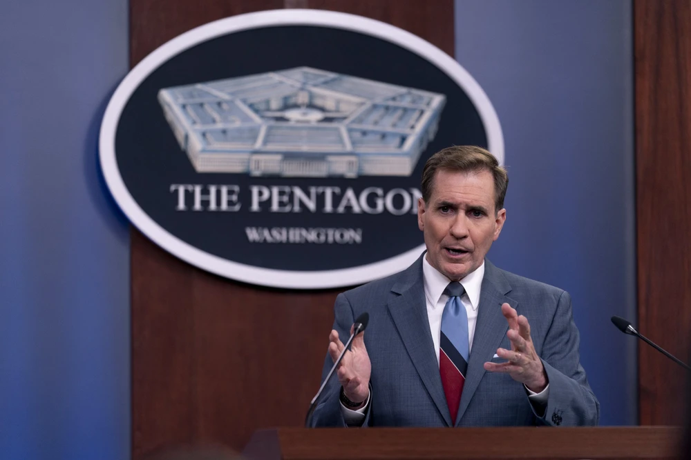 Người phát ngôn Bộ Quốc phòng Mỹ John Kirby trong một cuộc họp báo tại Lầu Năm Góc. Ảnh: AP