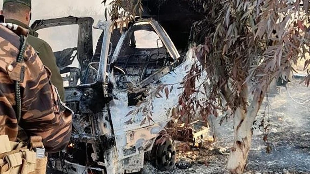 Một xe tại căn cứ không quân Ain al-Asad bị trúng rocket trong vụ tấn công sáng 3-3. Ảnh: CNN