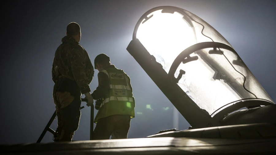 Một hoa tiêu trên tiêm kích Tornado của Không quân hoàng gia Anh trên buồng lái hôm 13-4. Ảnh: REUTERS