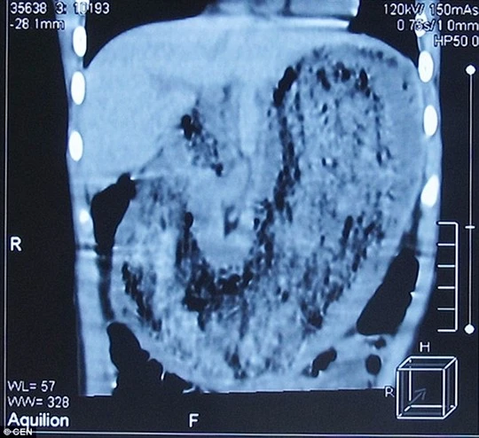 Tại bữa ăn trong tết nguyên đán mới đây, bé gái ngã bệnh nên người cha đã đưa con đến các bác sĩ. Sau khi khám tổng quát, một bác sĩ tại địa phương phát hiện vật lạ giống khối u trong bụng bệnh nhi. Kết quả chụp CT cho thấy trong dạ dày bị lấp đầy bởi một vật lạ nhưng vị bác sĩ chưa kết luận chính xác đó là gì.