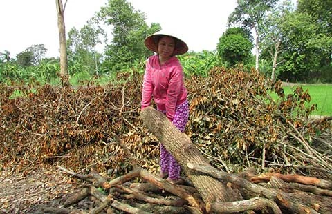 Vườn có 32 cây vú sữa của gia đình ông Cà Ri đã bị cưa gần hết ngay sau ngày THA cưỡng chế giao đất. Ảnh: N.NAM