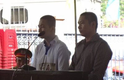 Hai bị cáo Vũ (trái) và Tịnh tại phiên tòa lưu động ngày 26-11. Ảnh: CTV