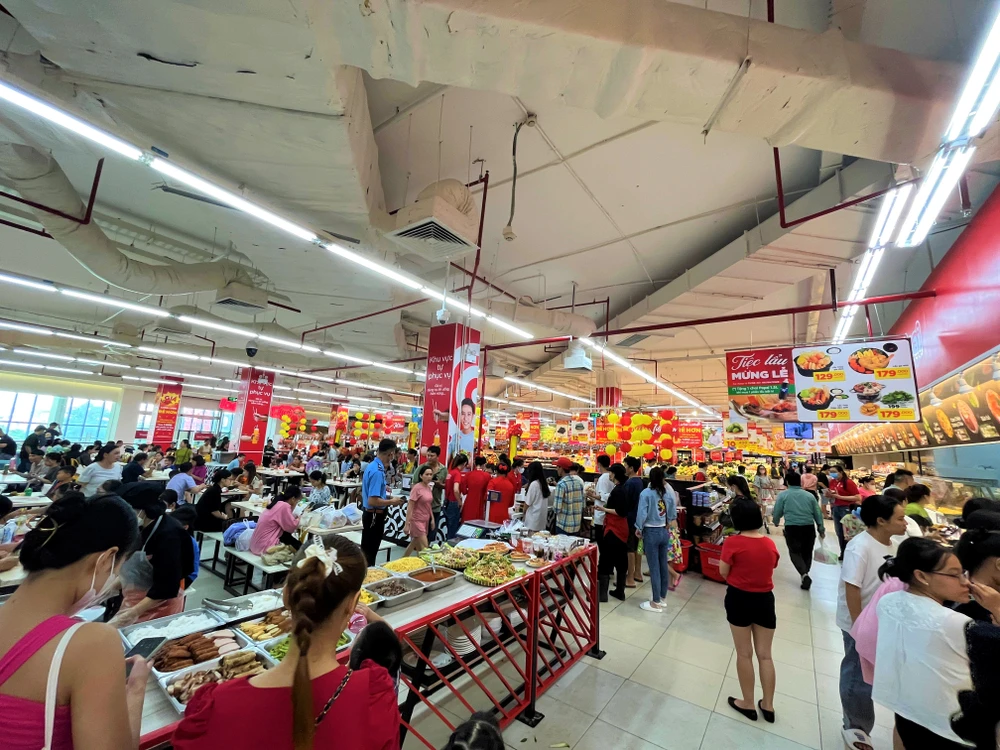 Ngày 2-9, ghi nhận tại một số chợ, các siêu thị như Lotte Mart, GO! Aeon quận Tân Phú, nhiều chương trình khuyến mãi đến 50% đã thu hút lượng lớn khách hàng đến mua sắm. Riêng những siêu thị có khu vực vui chơi, ăn uống càng đông đúc khách hàng.