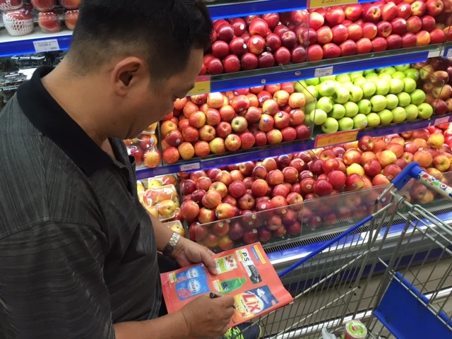 Gặp một khách hàng đang cẩn thận cầm tờ cẩm nang khuyến mãi trong dịp lễ này. Vị này cầm bút khoanh từng sản phẩm nào thấy giá được giảm mạnh để chọn mua. Cụ thể như kem đánh răng PS than hoạt tính giá 31.000 đồng/cây, siêu thị tặng khách hàng 22.000 đồng, khách hàng chỉ thanh toán 9.000 đồng/cây. Hay bột giặt LIX hương nước hoa giá bán 236.000 dồng/bịch, khách hàng chỉ trả 89.000 đồng/bịch. Vị này cho biết giá giảm như vậy thấy rẻ rồi.