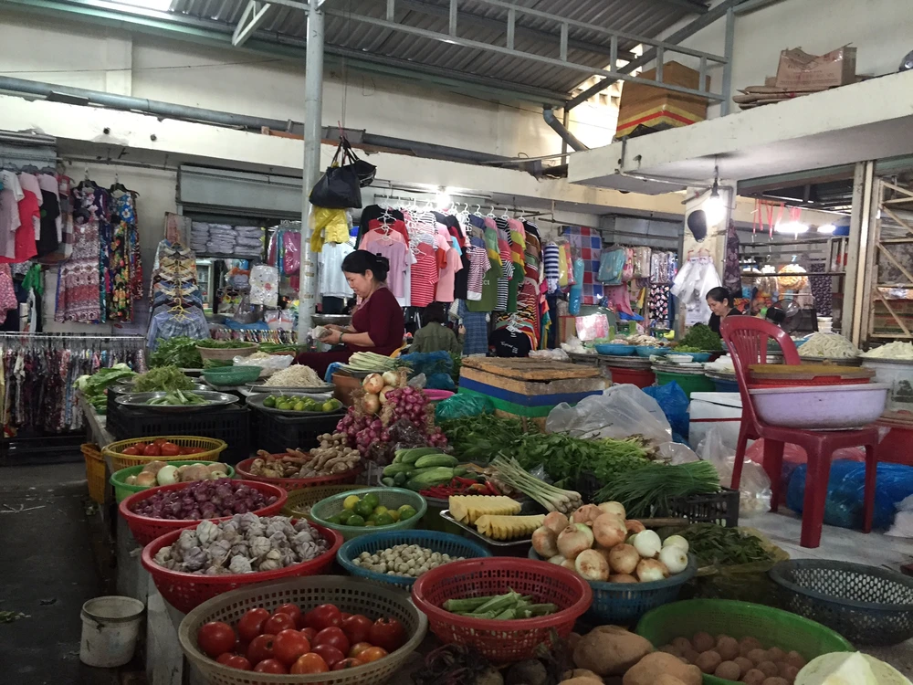 Chị L., tiểu thương quầy rau củ, than thở từ sáng đến giờ không bán được bao nhiêu, không thấy có khách nào đi chợ. Ngày thường đã vắng, nay ngày lễ còn vắng hơn.