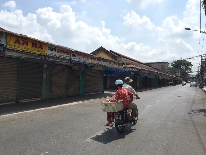 Trên con đường Tân Tiến, Lê Minh Xuân, Phú Thọ Hòa… xung quanh chợ Tân Bình các kiốt vải vốn nhộn nhịp thì nay đóng cửa im ỉm.