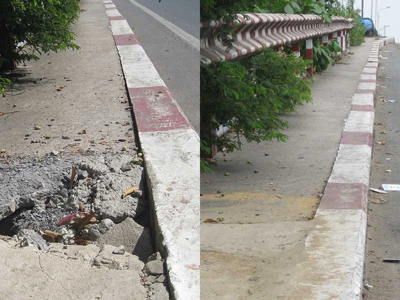 Sau khi báo đăng, cơ quan chức năng đã sửa chữa lề cầu nói trên (ảnh phải).