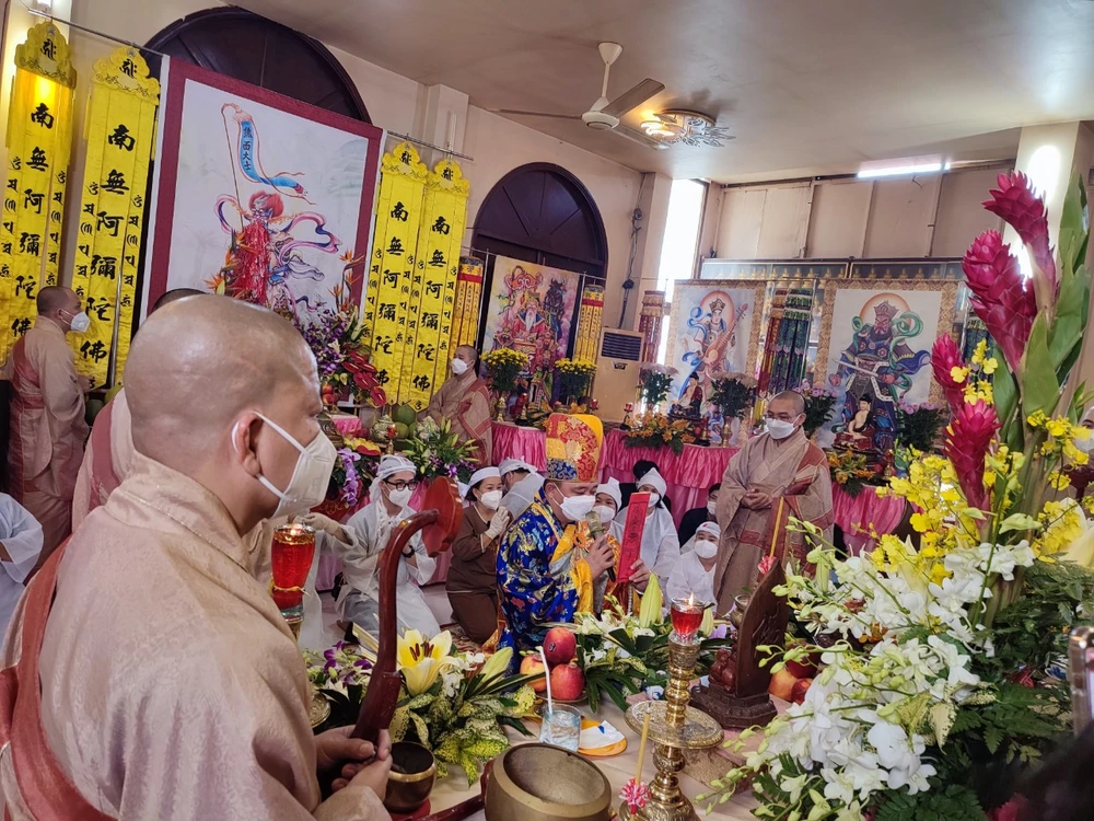 Lễ cầu siêu diễn ra tại chùa Giác Hoằng. Ảnh: NGUYỄN TRÀ