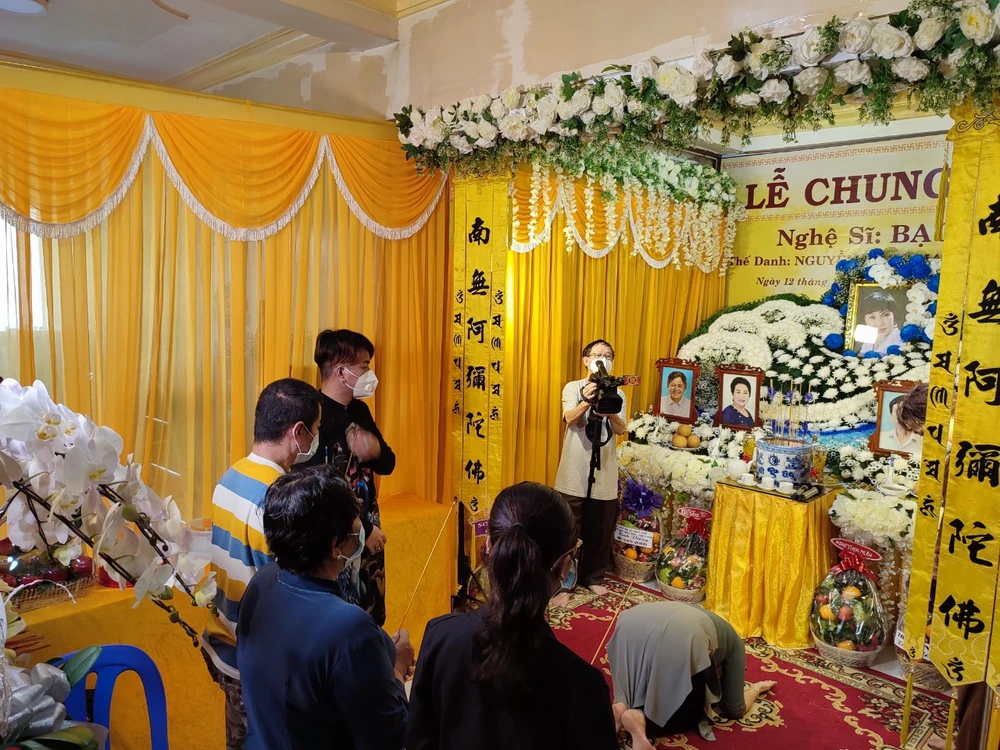 Lễ cầu siêu nghệ sĩ Bạch Mai Kim Phương cùng các nghệ sĩ: Thanh Châu, Thanh Dũng và Thanh Linh sáng 12-10. Ảnh: NGUYỄN TRÀ